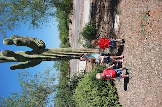 This past weekend we went to Arizona for my new niece, Stella's Baptism and to visit my brother Ryan's family. It was a BLAST!! We left bright and early on Friday our of Omaha at 6:00 am so the boys and I went into Omaha early evening and Jared came later(he had a volleyball game). I just was worried with boys getting no sleep and then on a plane for 3 hours 45 min. Well, Landon didn't get much sleep because he had not been feeling well and didn't sleep well and was up for about an hour, which is really rare for our boys to be up. Then both boys were up by 4:30am and our the door to get to the airport by 5:00. We were a little rushed but we made it and all went pretty well during check in and such. Our friends let us borrow a umbrella double stroller which was nice and light and easy to pack. We didn't check bags so that was nice too! The flight was not to bad the boys got antsy but I would say for almost 4 hours they did GREAT, with no sleep! Yep that's right neither boy slept the whole flight even after getting up at 4:30 am. We were lucky to have 3 seats instead of only 2. Lots of snacks, books, and different games and singing to make the time go by.